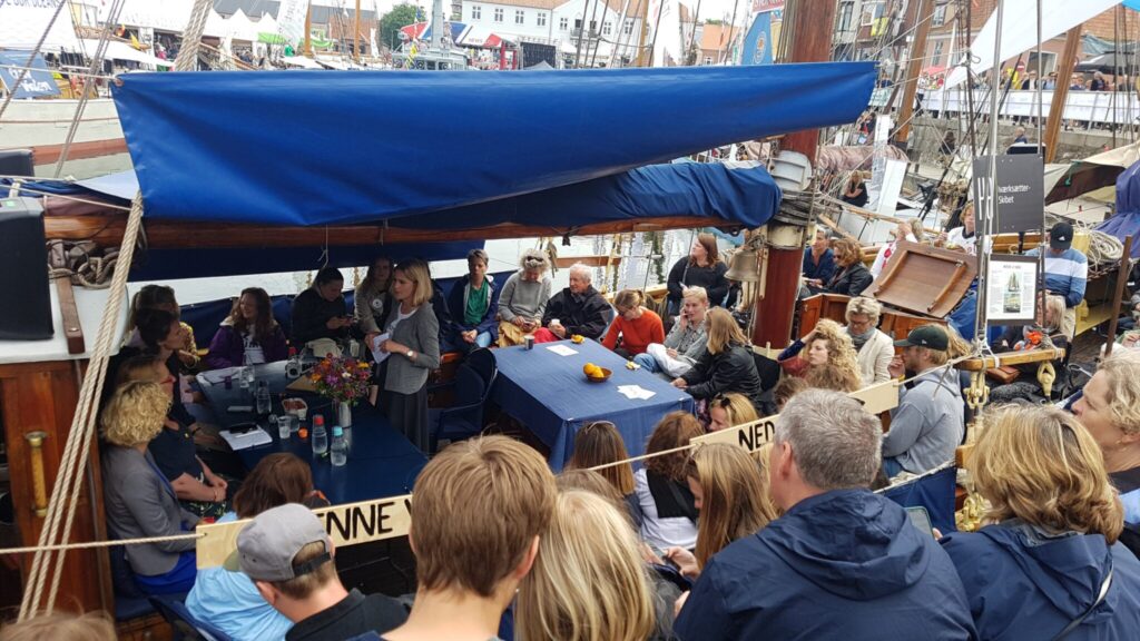 Dybt opslugt af debatten går der et stykke tid, før jeg opdager, hvor velbesøgt debatten er. Det er først, da jeg for alvor får drejet hovedet til højre, at jeg ser, der står over 100 mennesker på kajen.